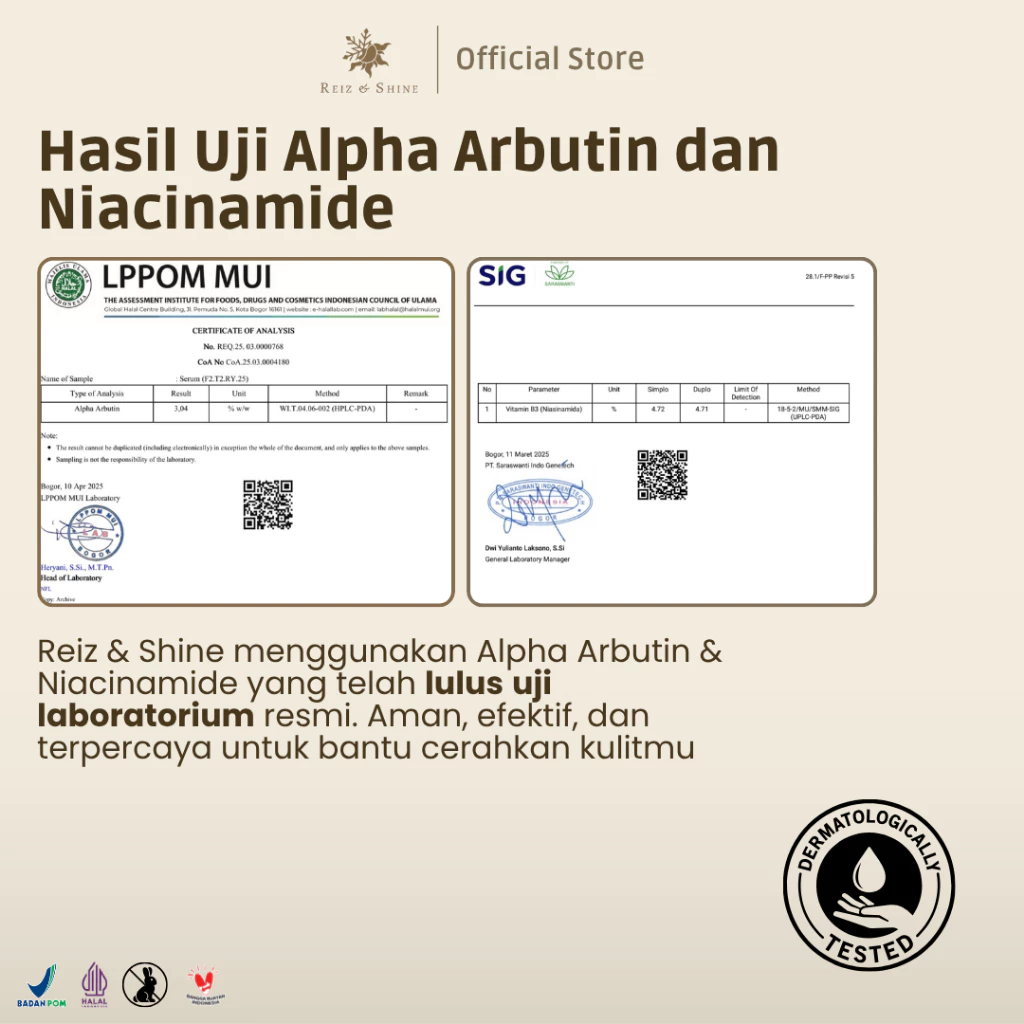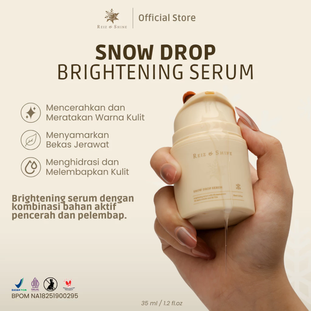 Dengan pemakaian yang praktis—cukup 30–60 detik untuk meratakan dan menyerap sempurna—Reiz And Shine Snow Drop Serum siap memberikan kulit yang lebih cerah, sehat, dan terhidrasi sepanjang hari.